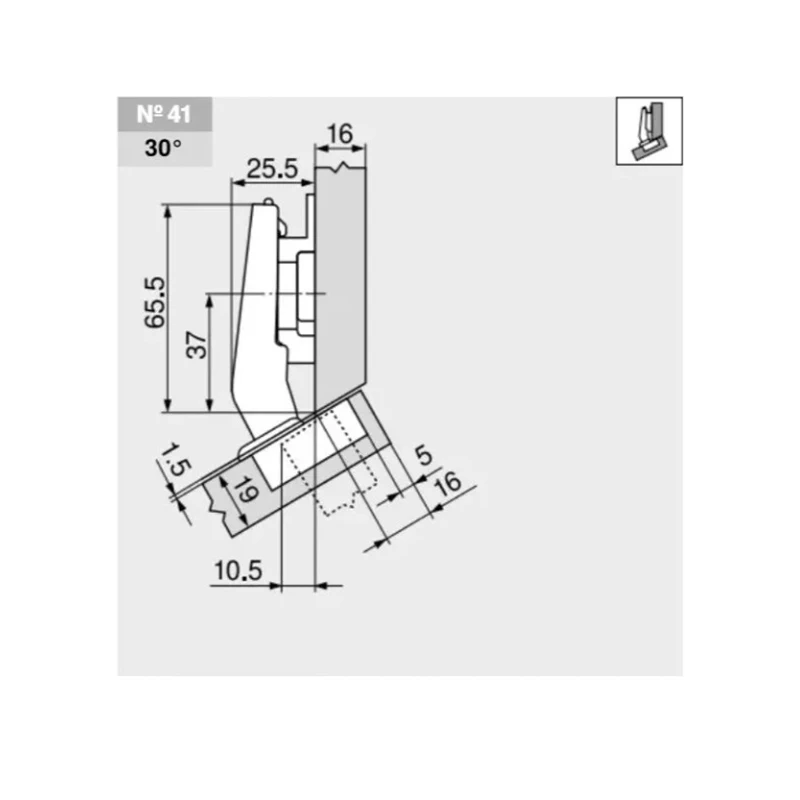 - Угол установки петли 45