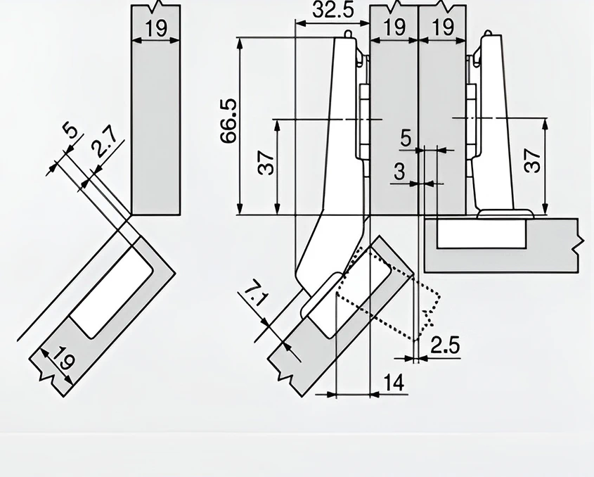 - Использование петли Для ДСП, МДФ, OSB, дерева