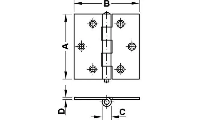 - Тип: накладная петля с фиксированным штифтом, изгиб A, прямая.