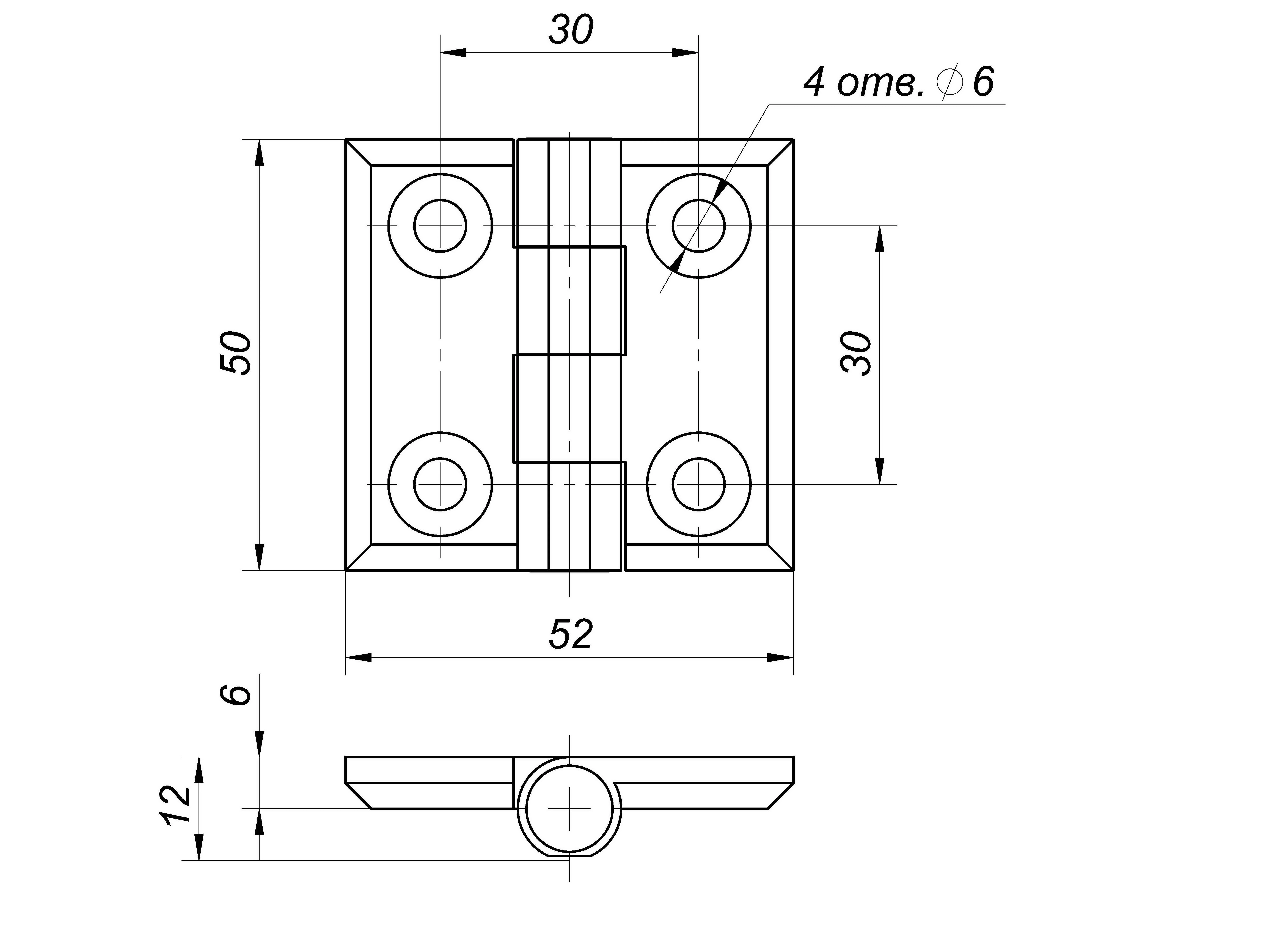 Квадратная, 50х50 мм, 4 отверстия. Толщина крыла 6 мм