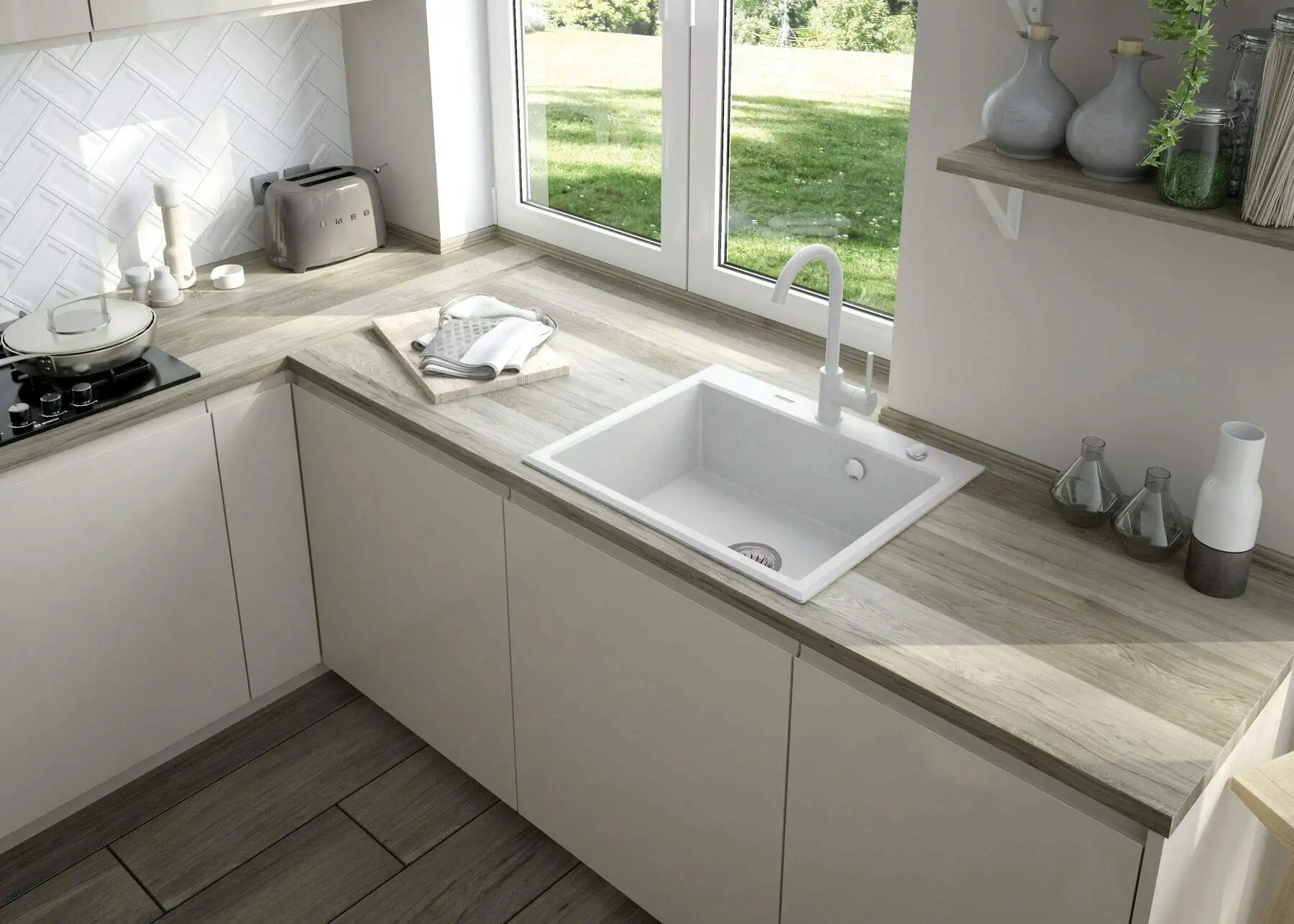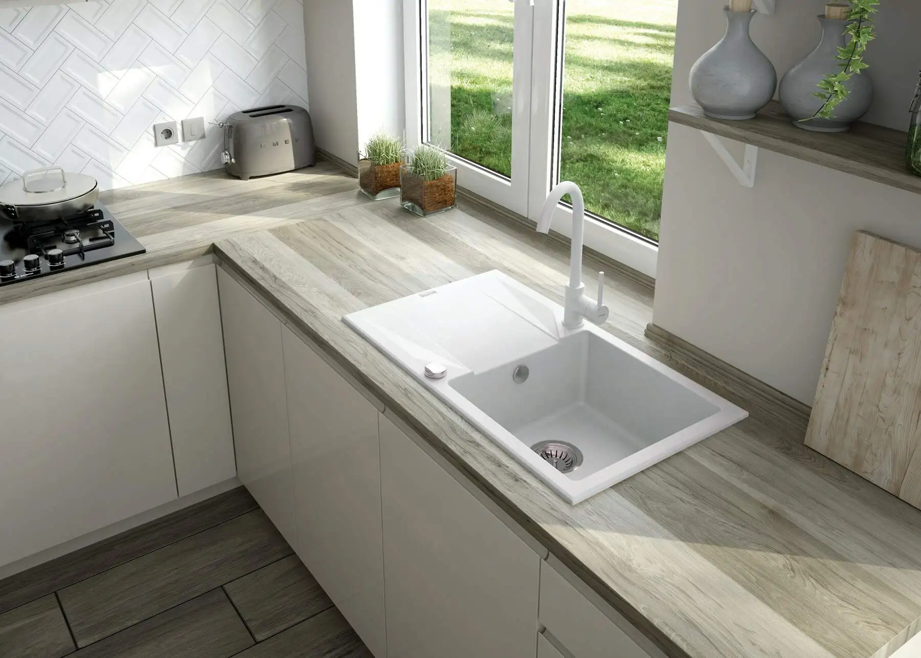 Змішувач для кухні Deante Milin, довжина виливу - 185мм, поворотний, 1важіль, білий