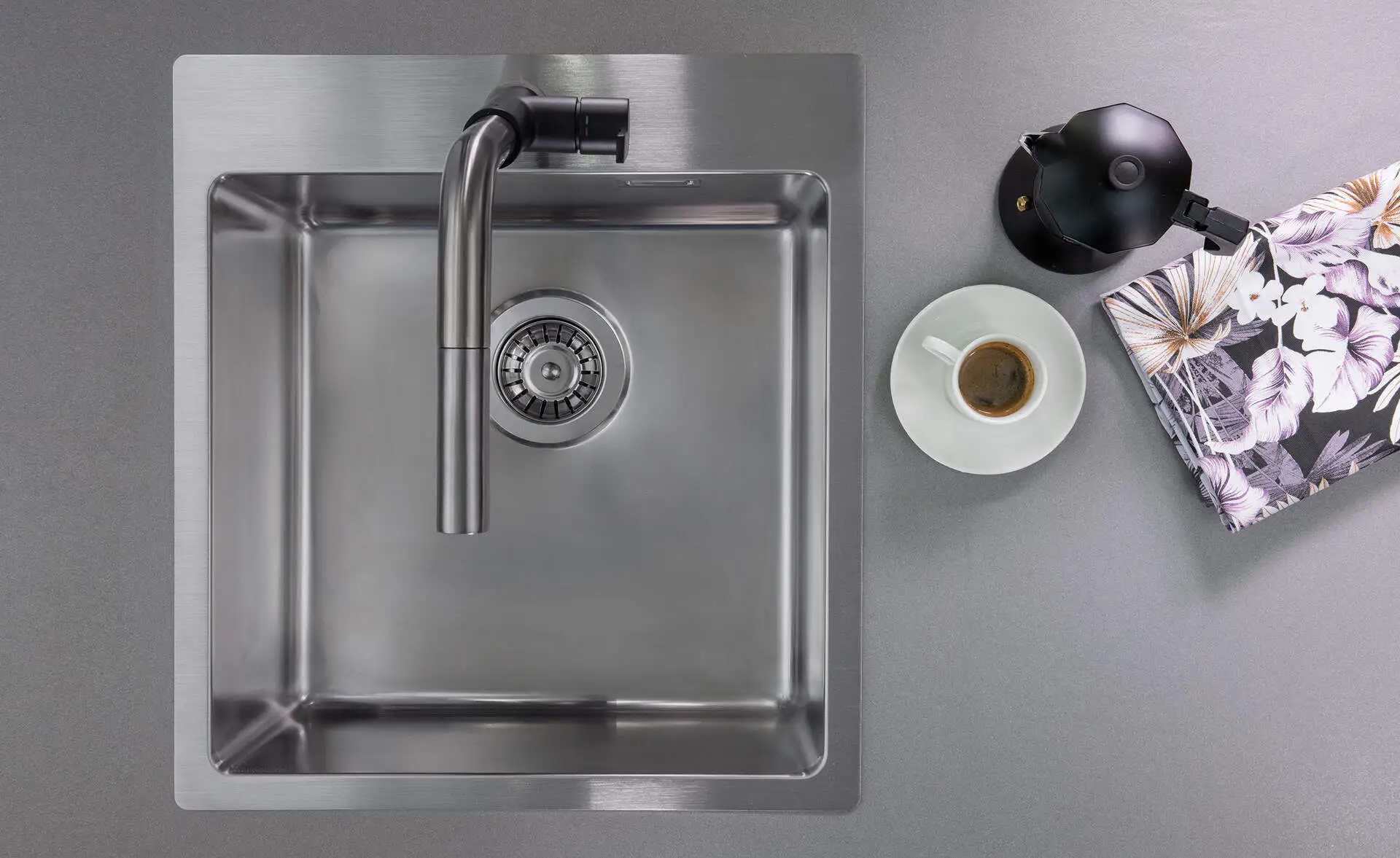 Змішувач для кухні Deante Silia, довжина виливу - 232мм, витяжний, 1важіль, чорний-сталь