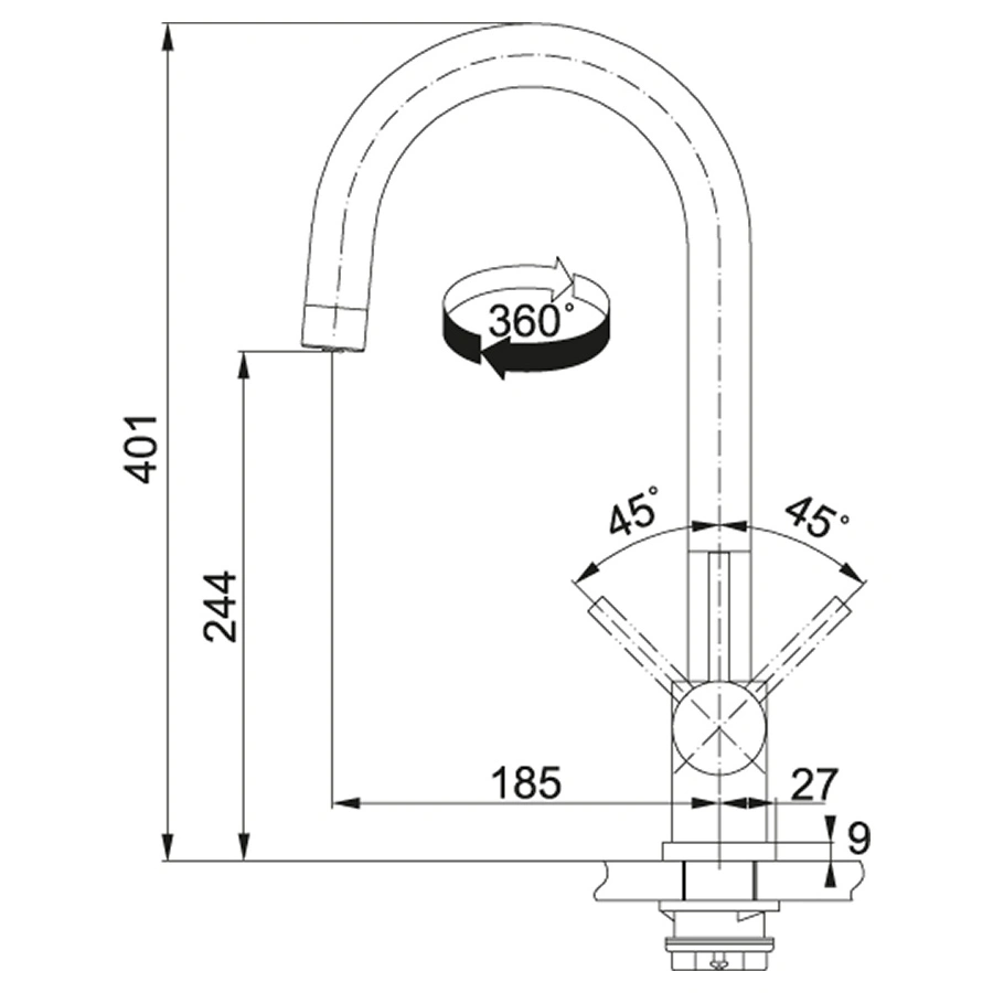 Змішувач для кухні Franke Eos Clear Water , довжина виливу - 185мм, поворотний, 1+1фільтр, нерж