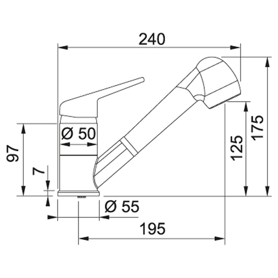 Змішувач для кухні Franke Novara-Plus Pull Out, довжин, виливу 195мм, витяжний, 1 важіль, сірий камі