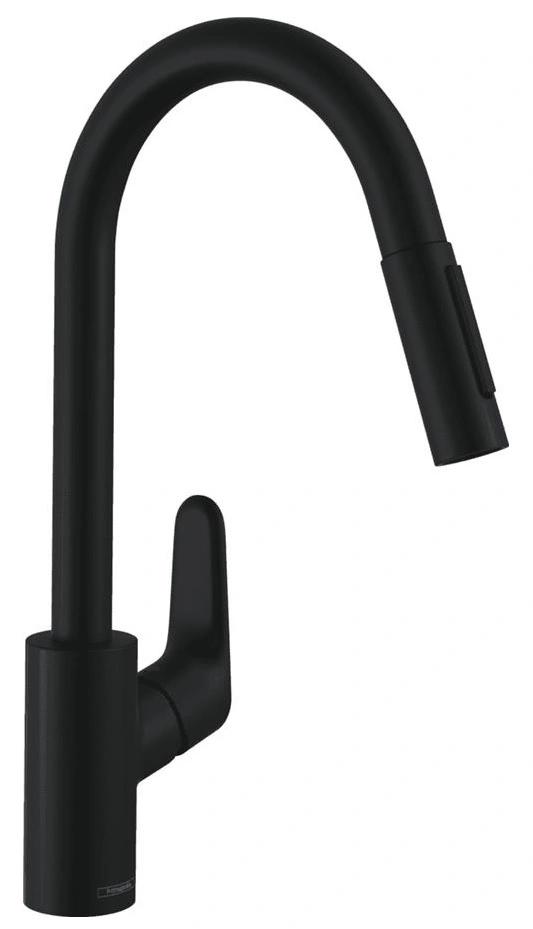 Змішувач для кухні Hansgrohe Focus M41, довжина виливу - 235мм, витяжний, 1важіль, KM240, чорний мат