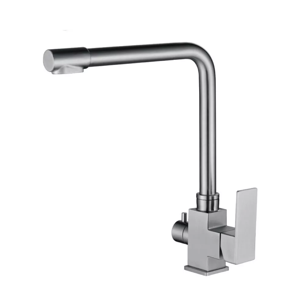Матеріал: харчова нержавіюча сталь марки SUS304. Тип корпуса: одноважільний. Вилив: високий, поворотний. Висота змішувача: 35 см. Довжина виливу: 24 см. Комплектація: змішувач, кріплення, шланги для підводу води 50 см.
