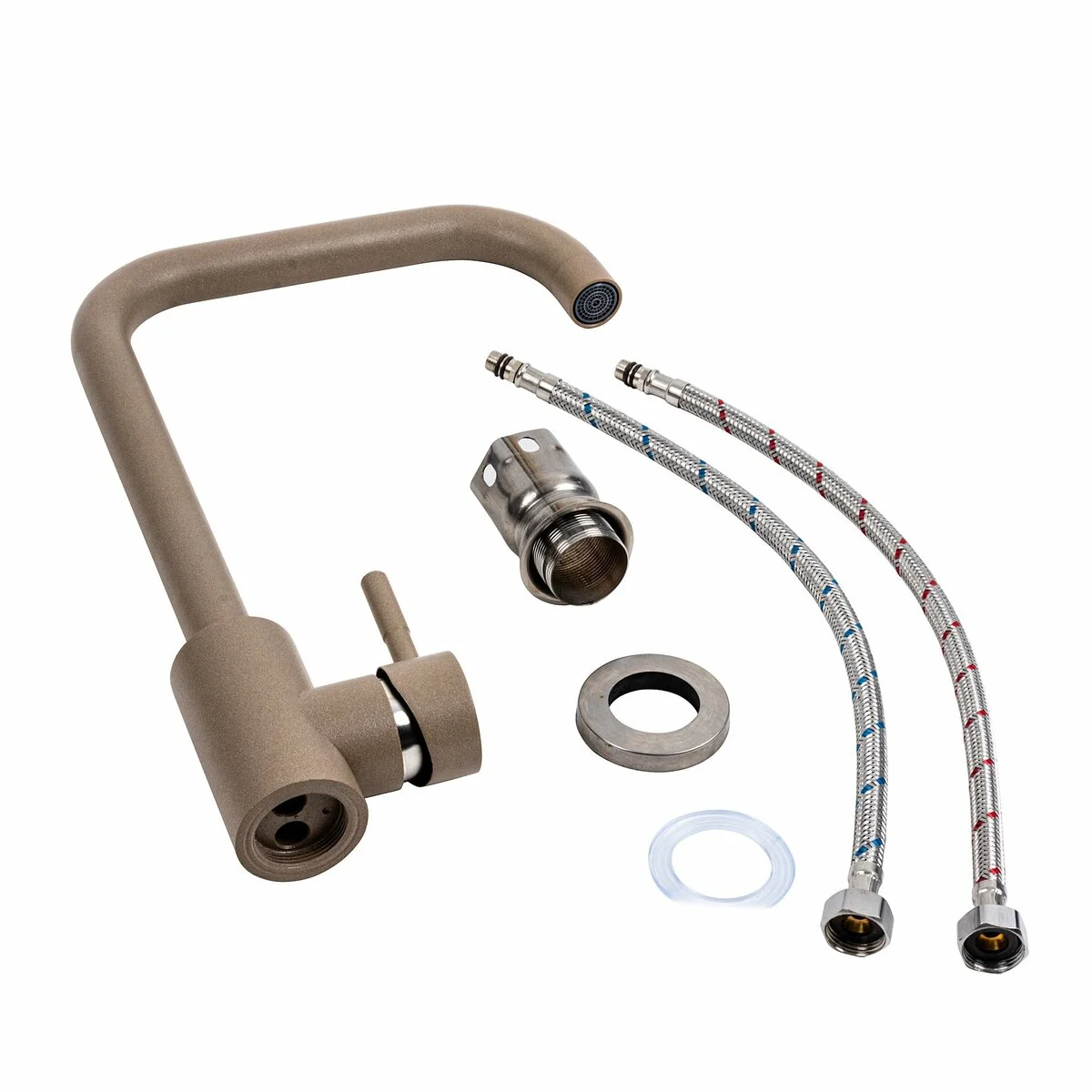 Змішувач кухонний Platinum NS02B (3008B-NA) Титан- це вишуканий та функціональний аксесуар для вашої кухні, призначений для забезпечення комфорту та ефективності під час готування та миття посуду. Ось більше інформації про цей змішувач: