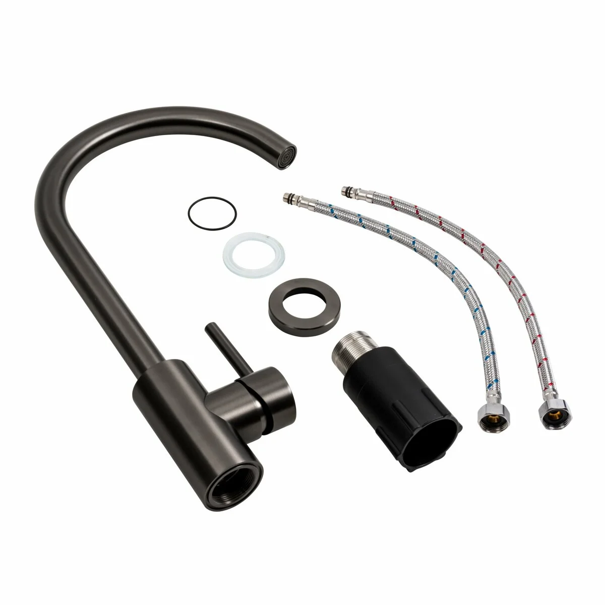 Кухонний змішувач Platinum PVD чорний 8003А-LI добре поєднується з кухонними мийками з PVD покриттям. Він має високий поворотний вилив, що полегшує миття посуду та допомагає зменшити витрати види.