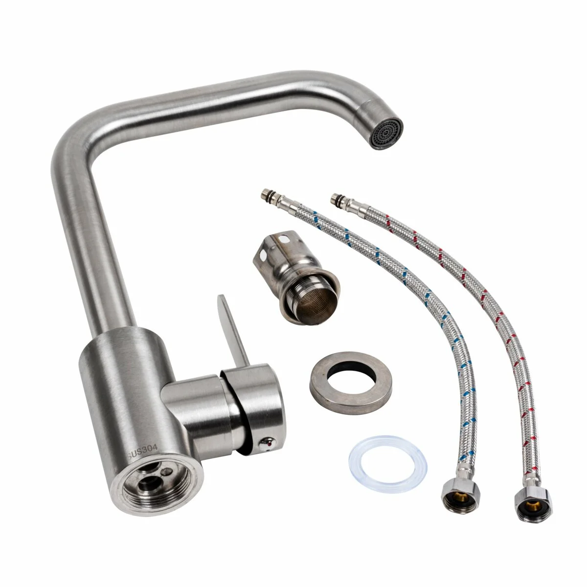 Змішувач кухонний VALESO KT 11 (3008B-FH) - це практичне та стильне обладнання для вашої кухні, яке поєднує в собі зручність, якість та елегантний дизайн. З цим змішувачем ви зможете ефективно та комфортно виконувати різноманітні завдання з водопостачання.
