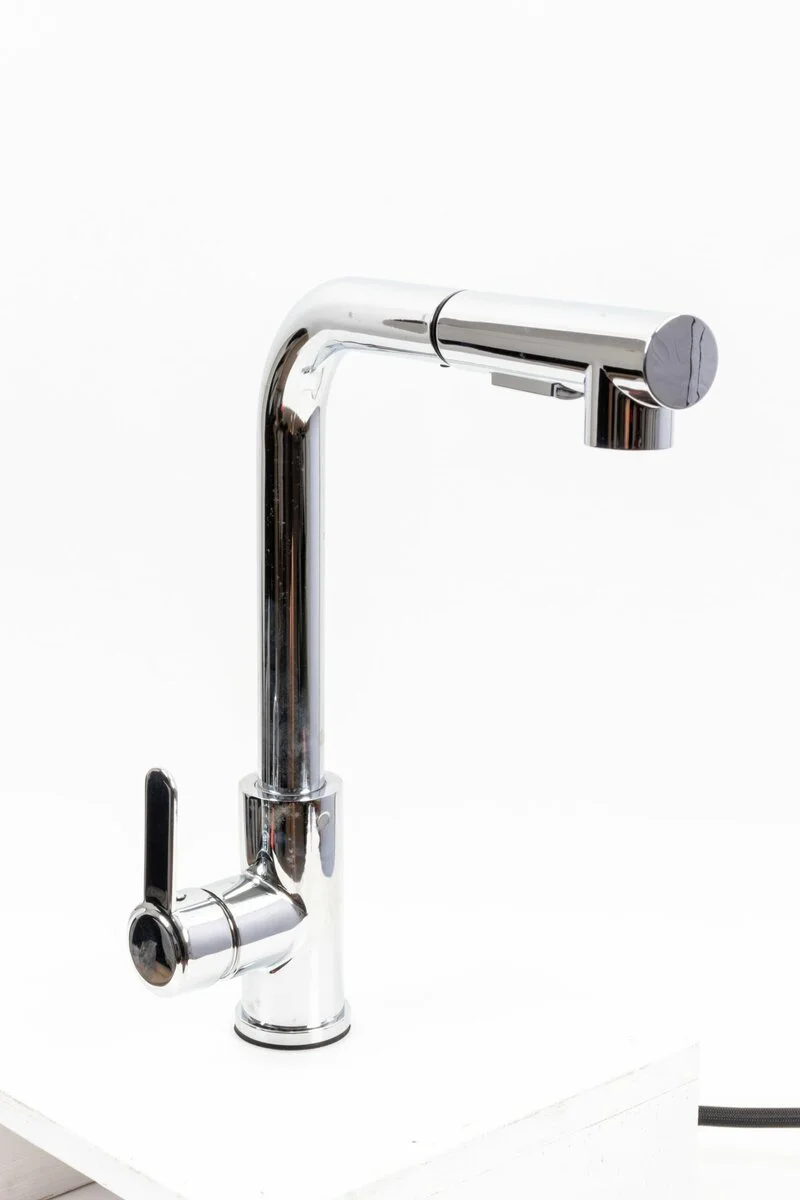 Стильний змішувач FC-1 Platinum із полірованої нержавіючої сталі – це поєднання елегантності та зручності. Висувна лійка на гнучкому шлангу забезпечує легкий доступ до кожного куточка мийки, що спрощує приготування та миття продуктів. Міцна конструкція та довговічні матеріали гарантують надійність і довгий термін служби.