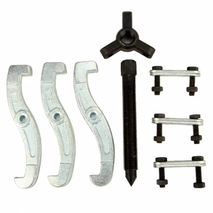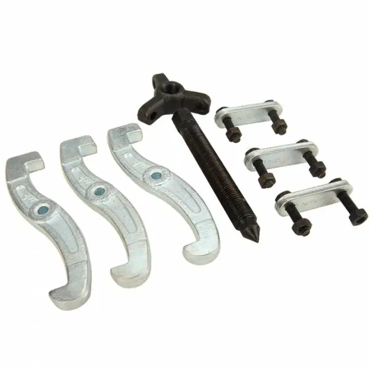 Знімач з центральним упором і трьома захватами 75 мм представляє собою спеціальне пристосування, предназначене для зовнішнього і внутрішнього захвату. Максимальна ширина зовнішнього захвату складає 75 мм. Знімач виготовлений з кованої інструментальної сталі повного гартування, що забезпечує міцність і надійність конструкції в експлуатації. Для захисту від корозії поверхня захватів оцинкована. З метою захисту від корозії виконано фосфатування гвинтового стрижня.